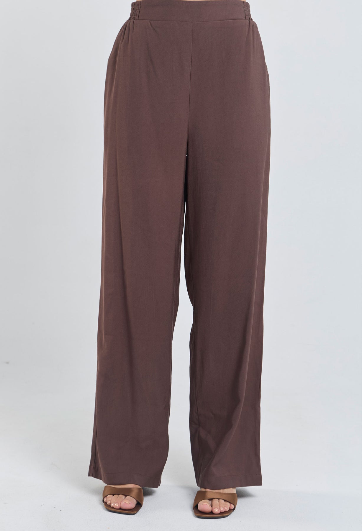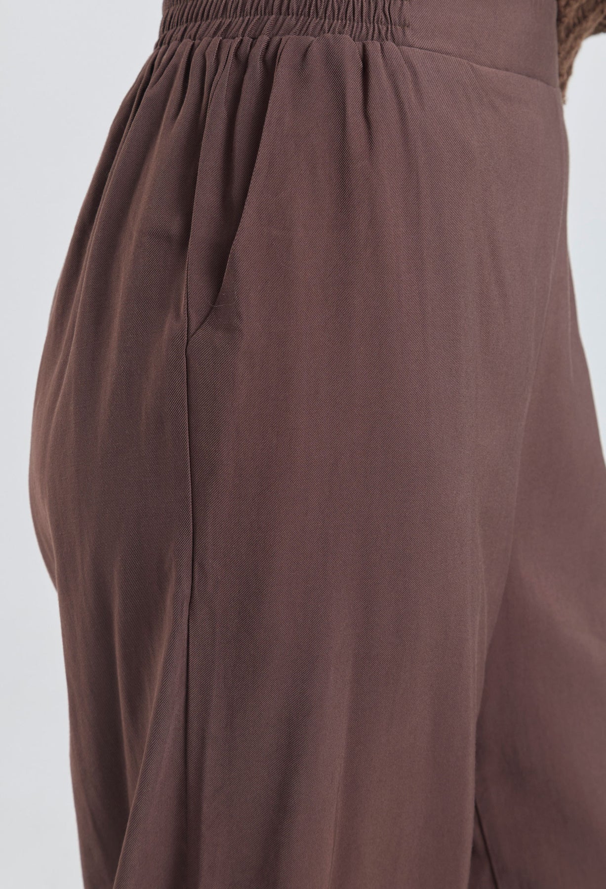 Pantalón recto unicolor con bolsillos laterales y pretina enresortada. La modelo mide 1.74 m y lleva puesta la talla S. Los accesorios de esta foto no vienen con la prenda. COMPOSICIÓN: 92% VISCOSA, 8% POLIESTER. SIN FORRO. Instrucciones de Lavado: Lavar a mano con agua fría, usar detergente suave, no retorcer en el secado, no usar secadora, no usar suavizante.