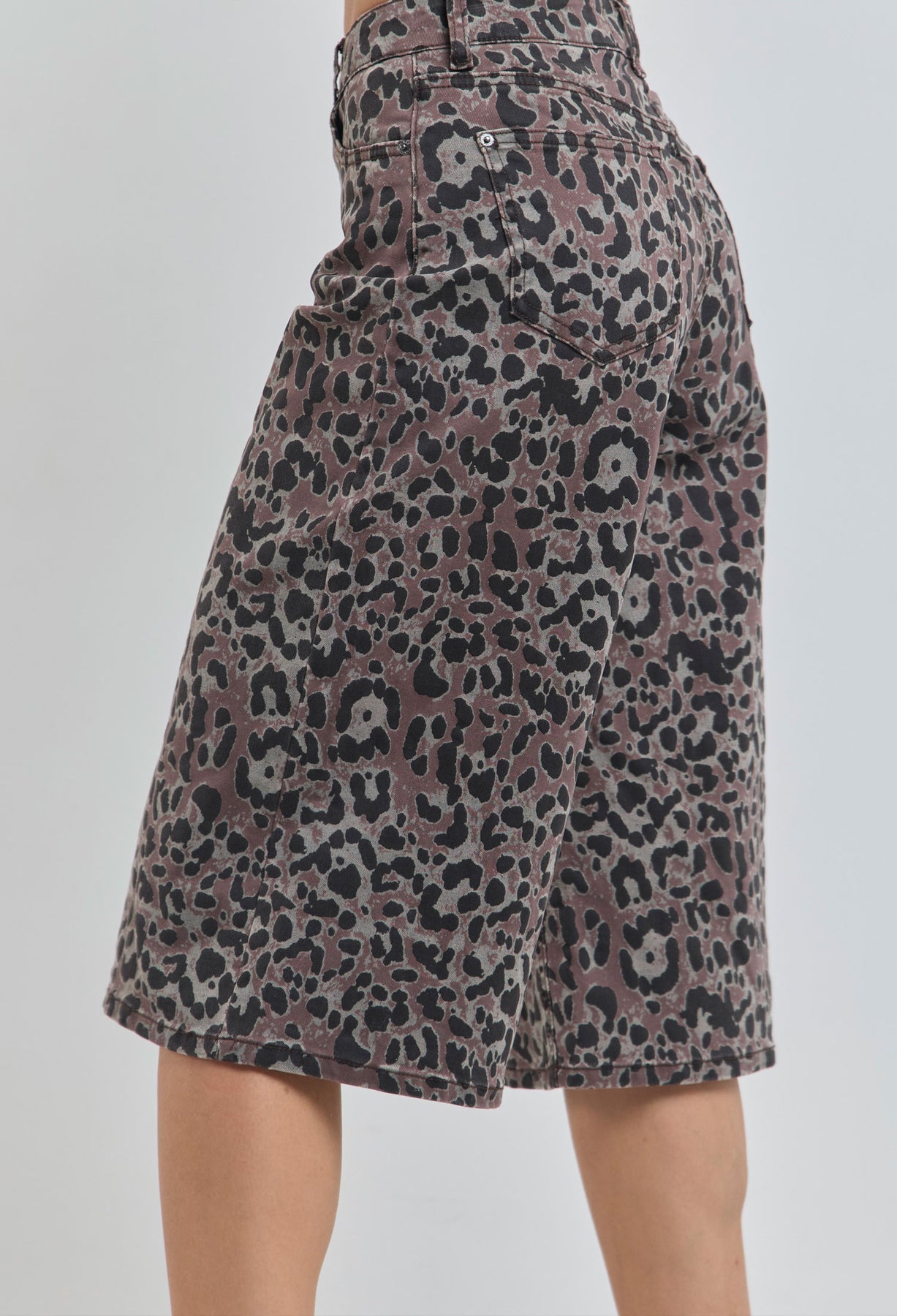 Pantalón corto bota amplia cinco bolsillos, estampado animal print leopardo; pretina con pasadores y ajuste por cierre con botonadura. La modelo mide 1.74 m y lleva puesta la talla 4. Los accesorios de esta foto no vienen con la prenda. COMPOSICIÓN: 97% ALGODÓN, 3% ELASTANO. SIN FORRO. Instrucciones de Lavado: Lavar a mano con agua fría, usar detergente suave, no retorcer en el secado, no usar secadora, no usar suavizante.