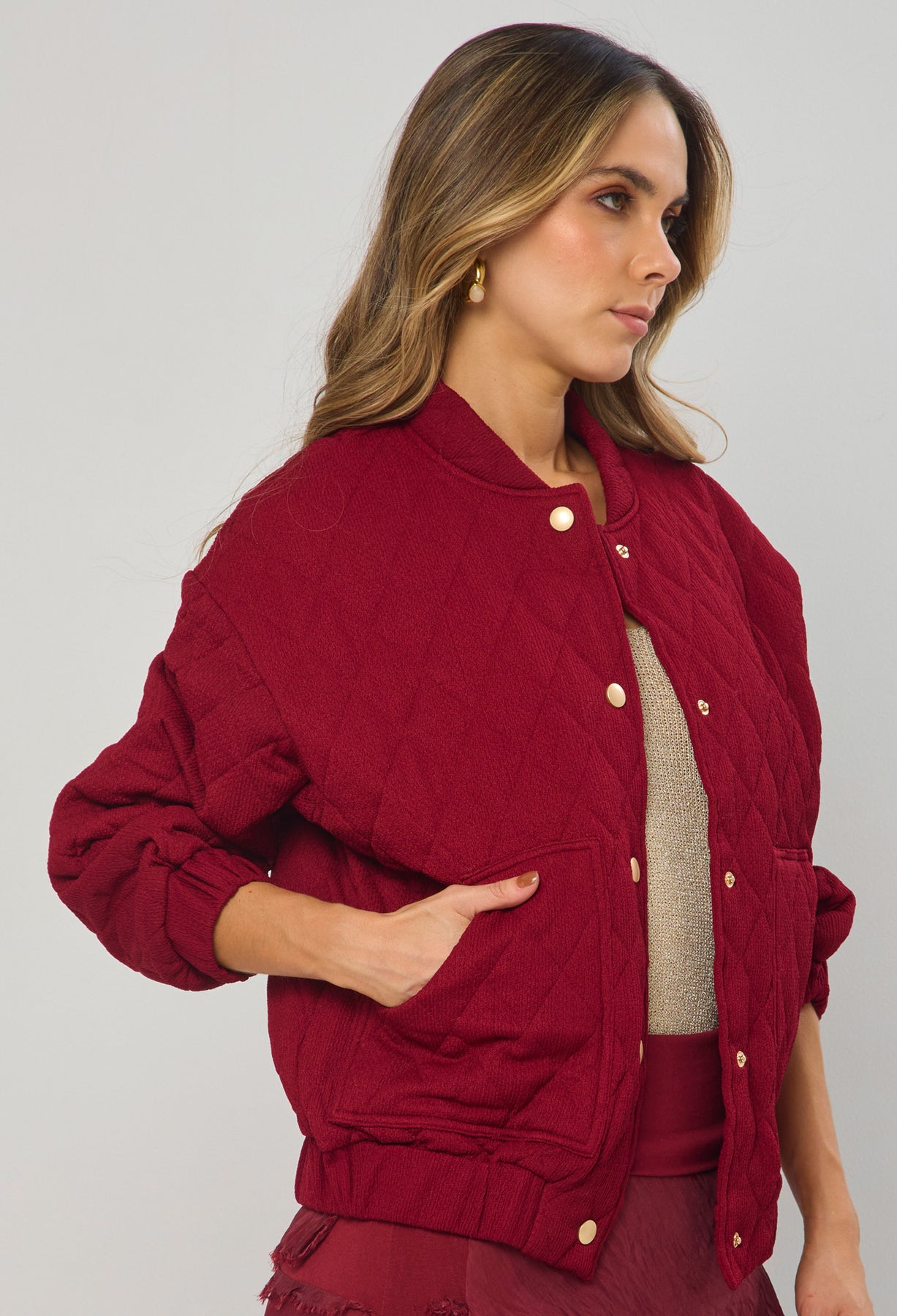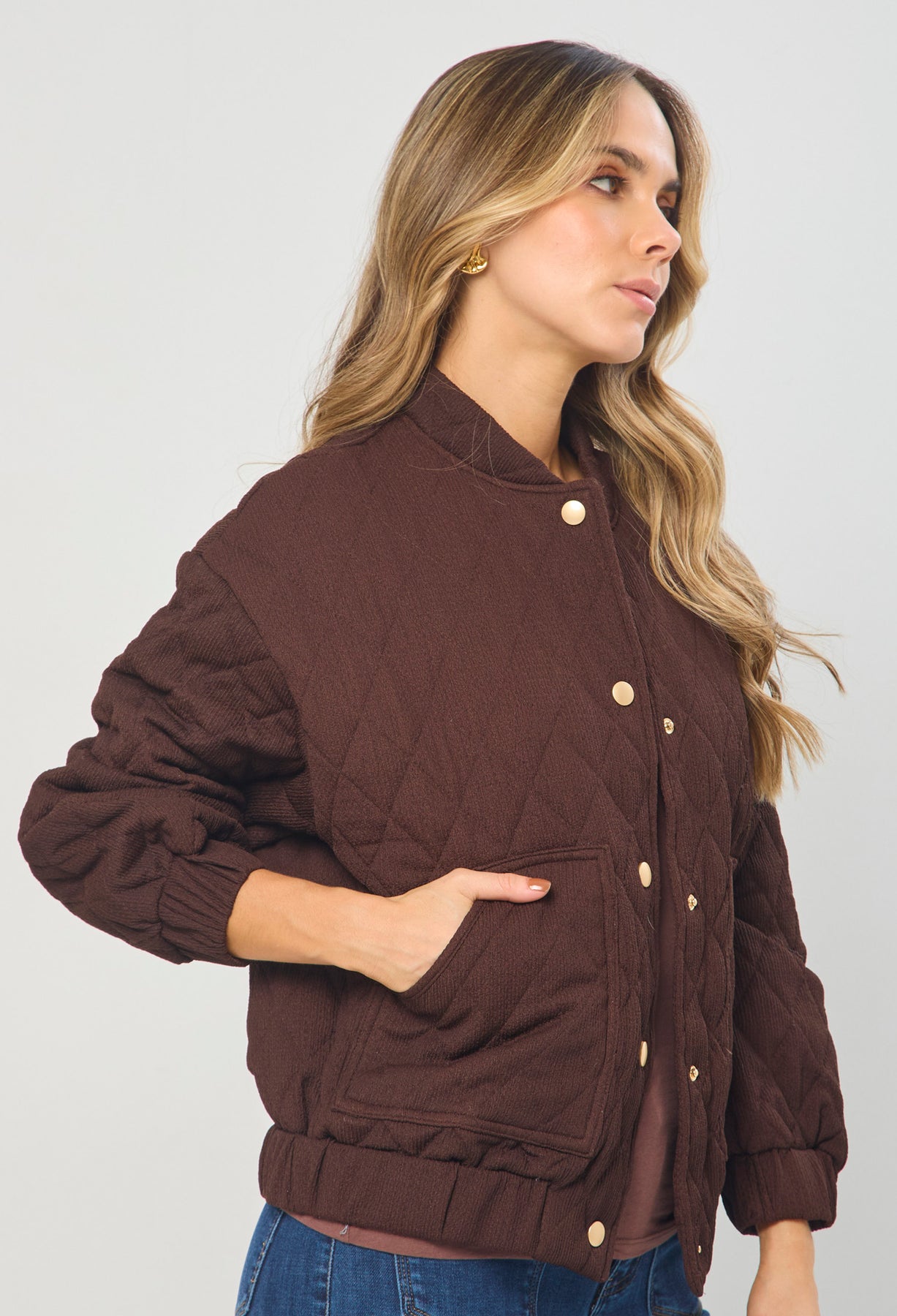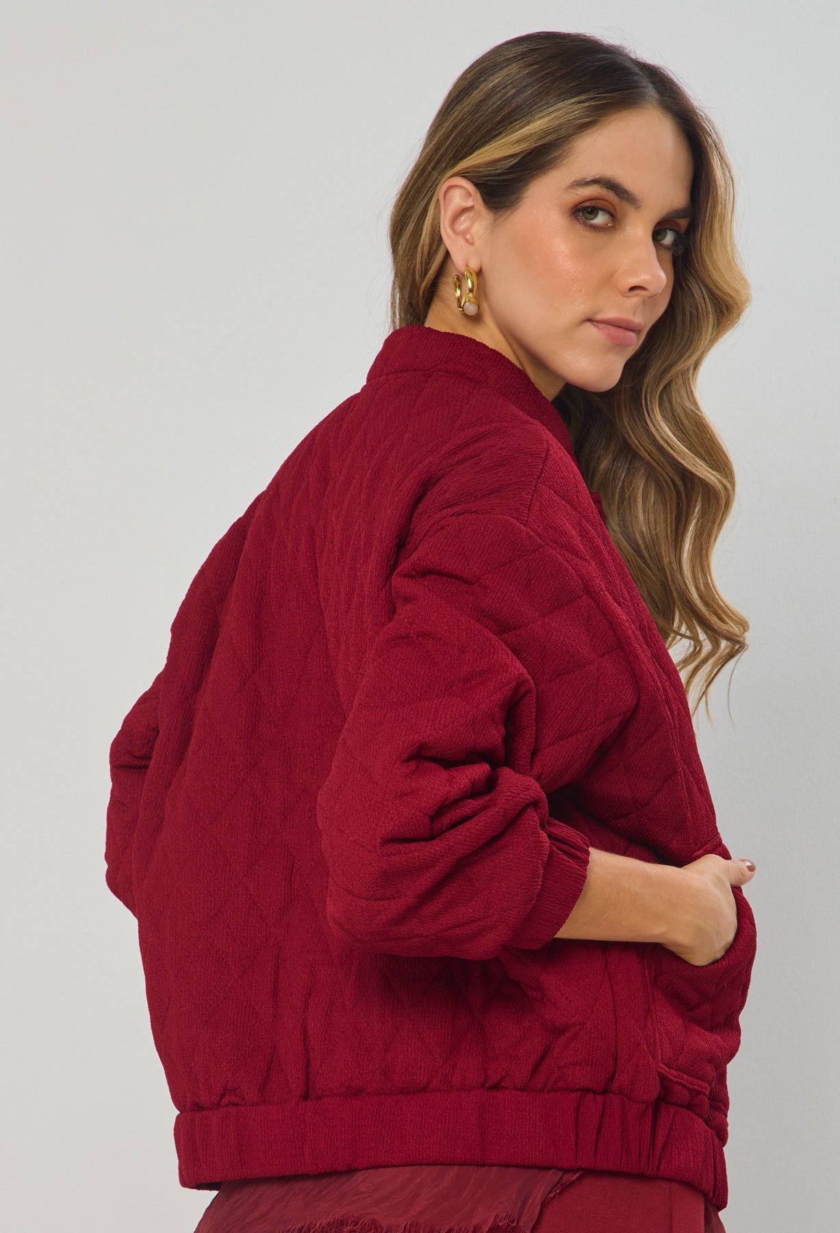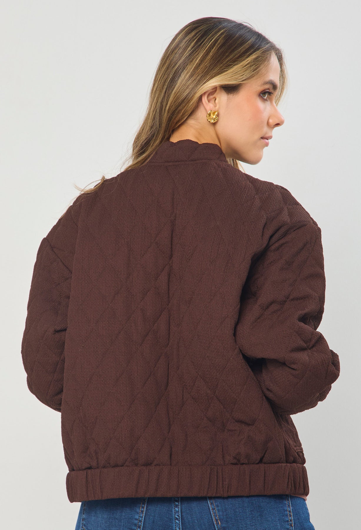 Chaqueta estilo patchwork, cuello, manga larga, bolsillos en frente y botonadura completa en frente tipo broche. La altura de la modelo es 1.72cm y esta usando una talla S. COMPOSICIÓN: 95% POLIESTER, 5% ELASTANO. FORRO: 100% ALGODÓN. RELLENO: 100% POLIESTER. Los accesorios de esta foto no vienen con la prenda. Instrucciones de Lavado: Lavar a mano con agua fría, usar detergente suave, no retorcer en el secado, no usar secadora, no usar suavizante.