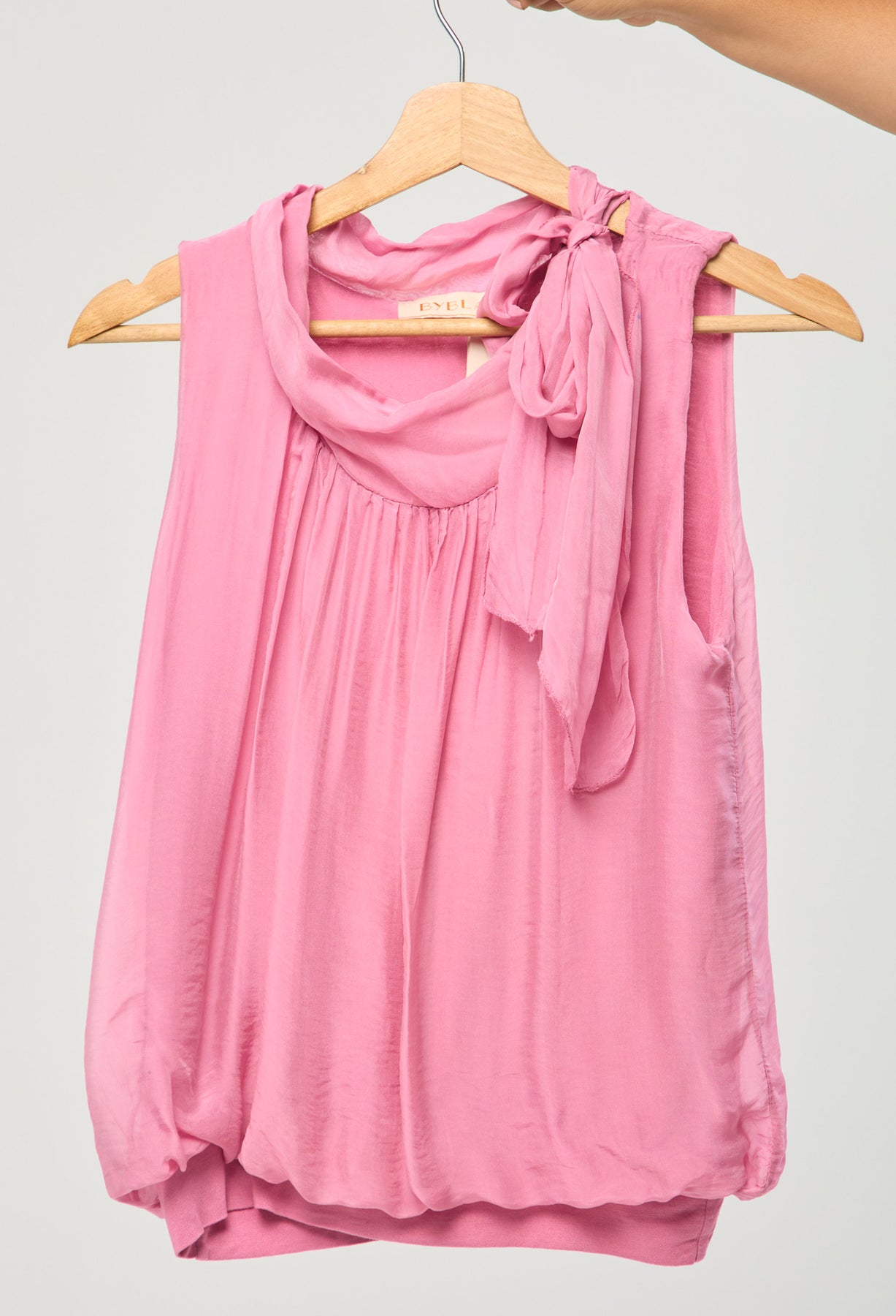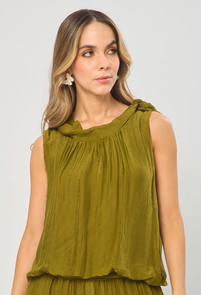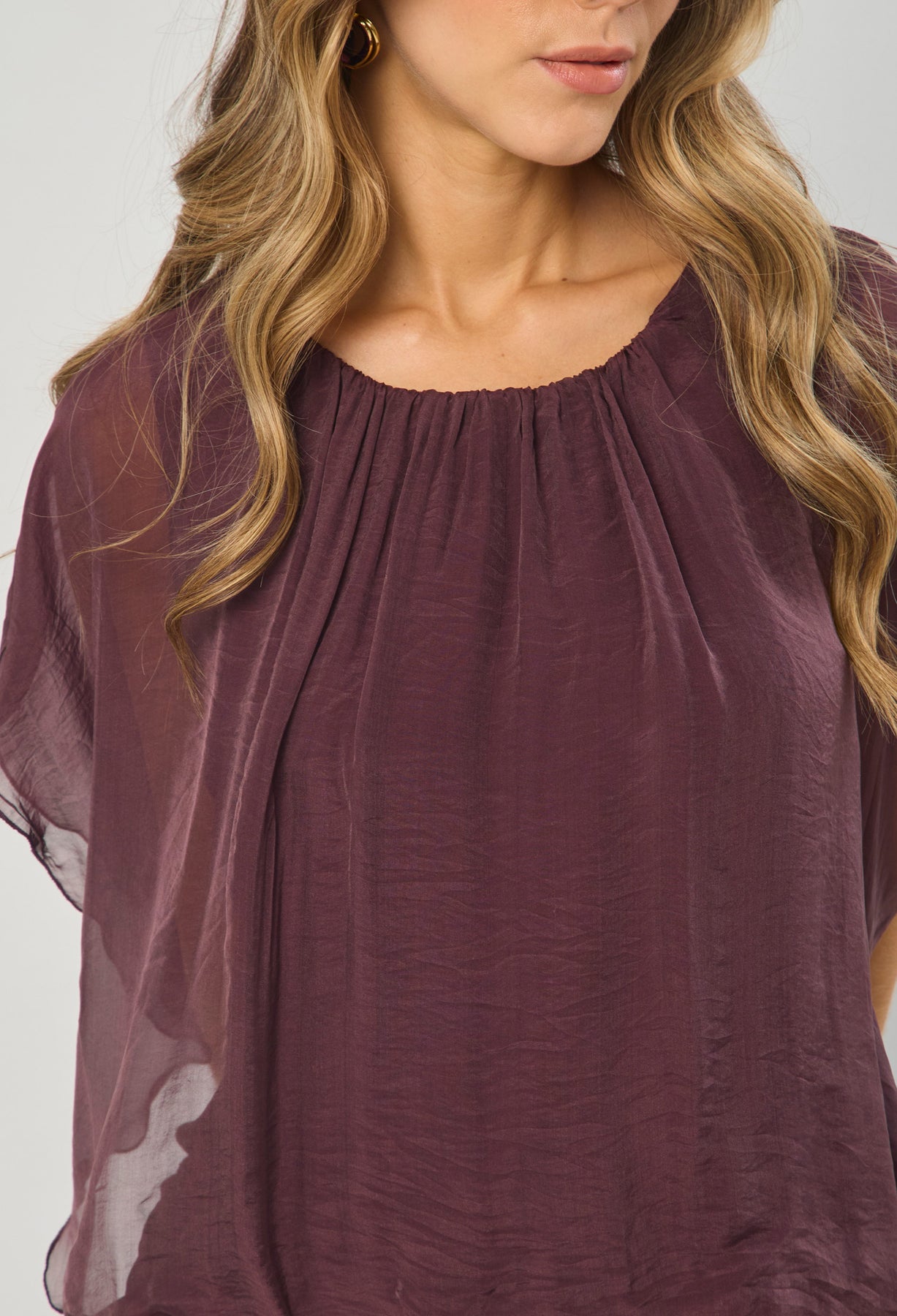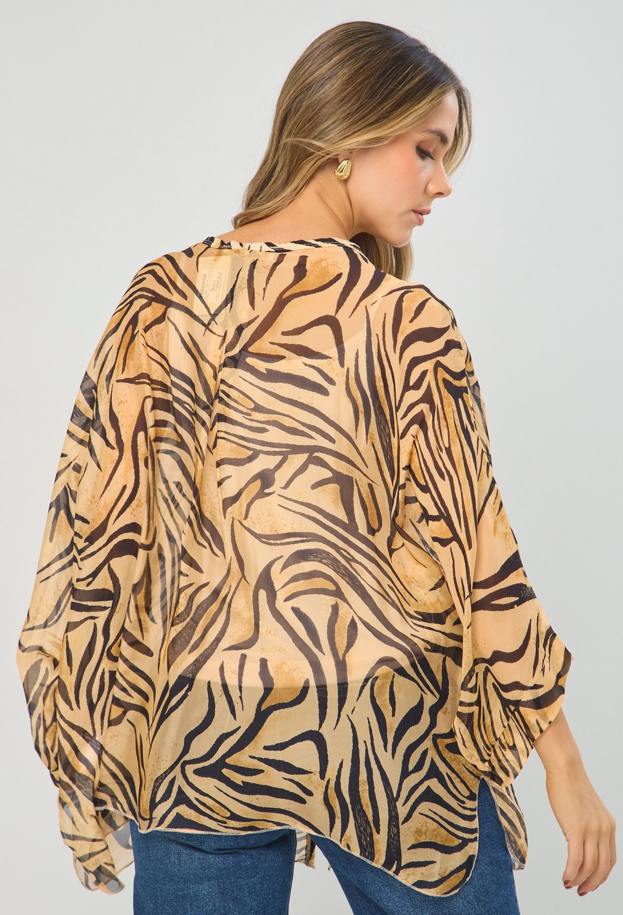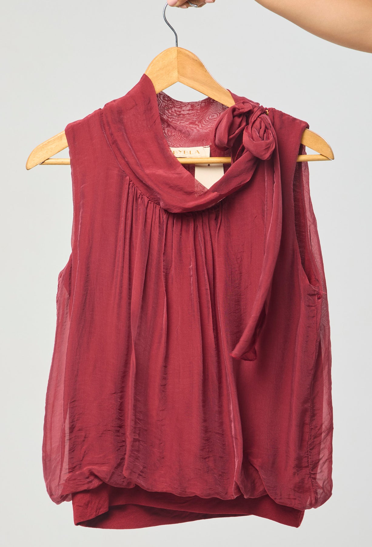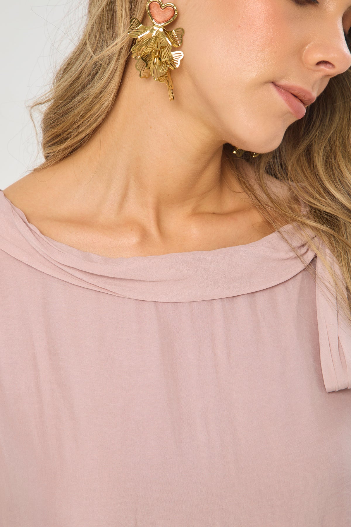 Blusa de seda, manga larga con puño enresortado, detalle de lentejuelas en top parte inferior. Silueta amplia, corte asimétrico. La modelo mide 1.70 m y lleva puesta la talla ÚNICA.