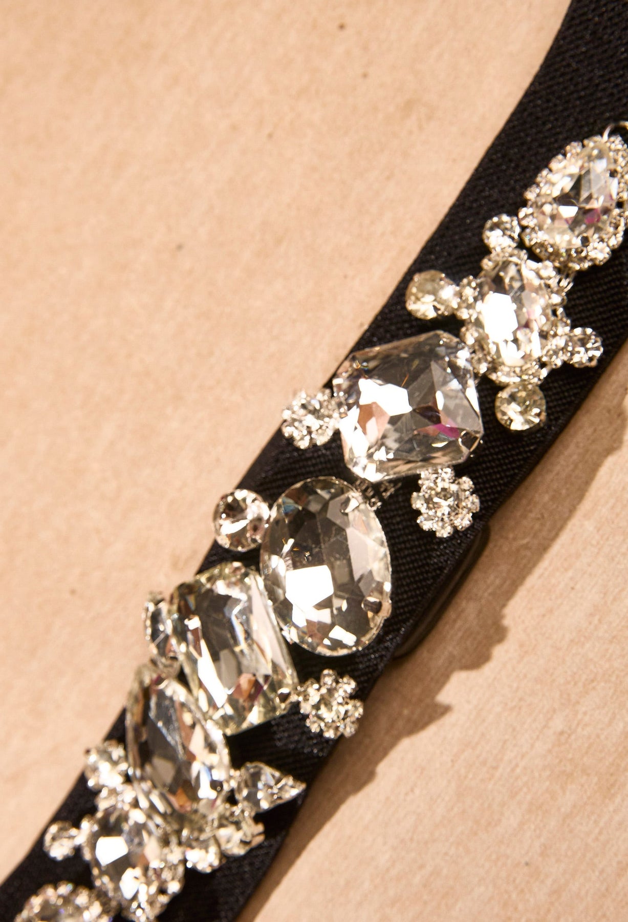 Precio habitual $79.900Cinturón en resorte con piedras tipo diamante con flores formadas por zircones y broche a presión.