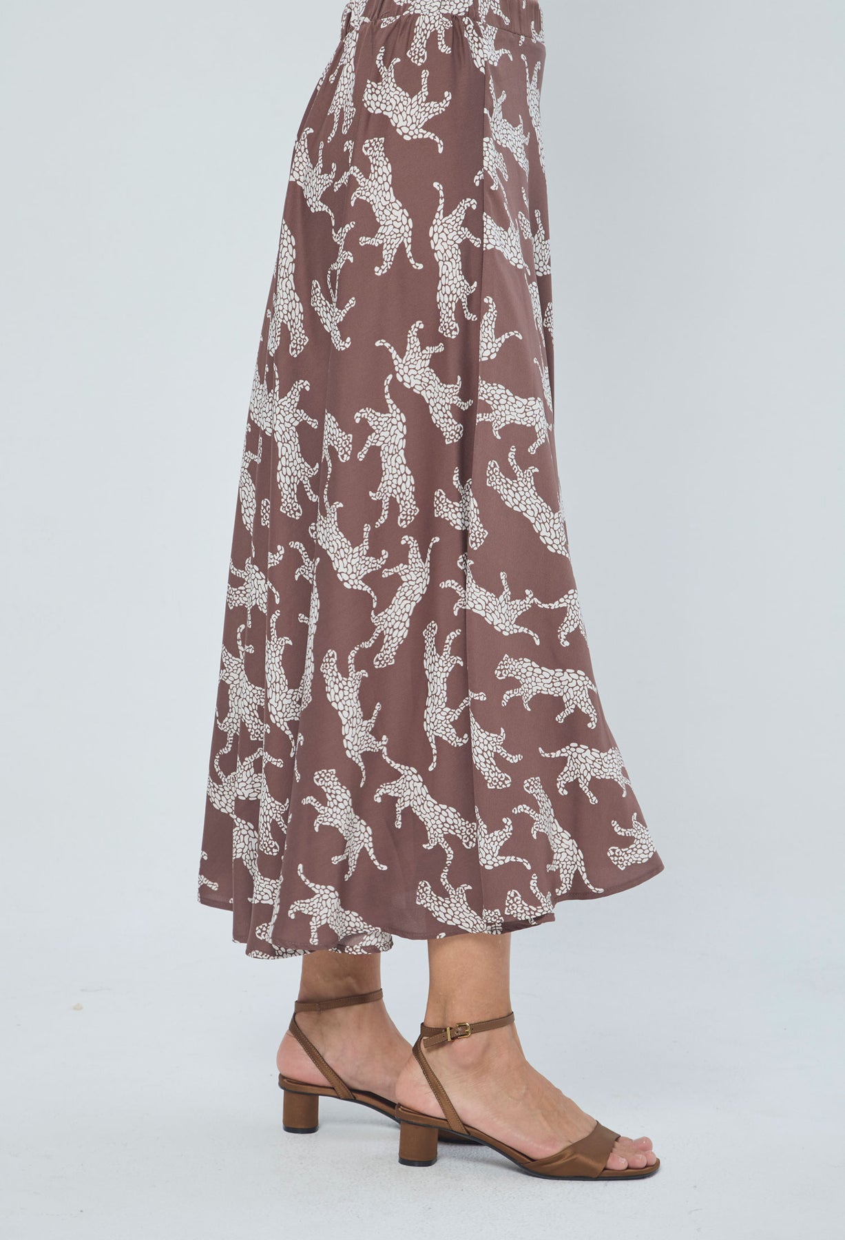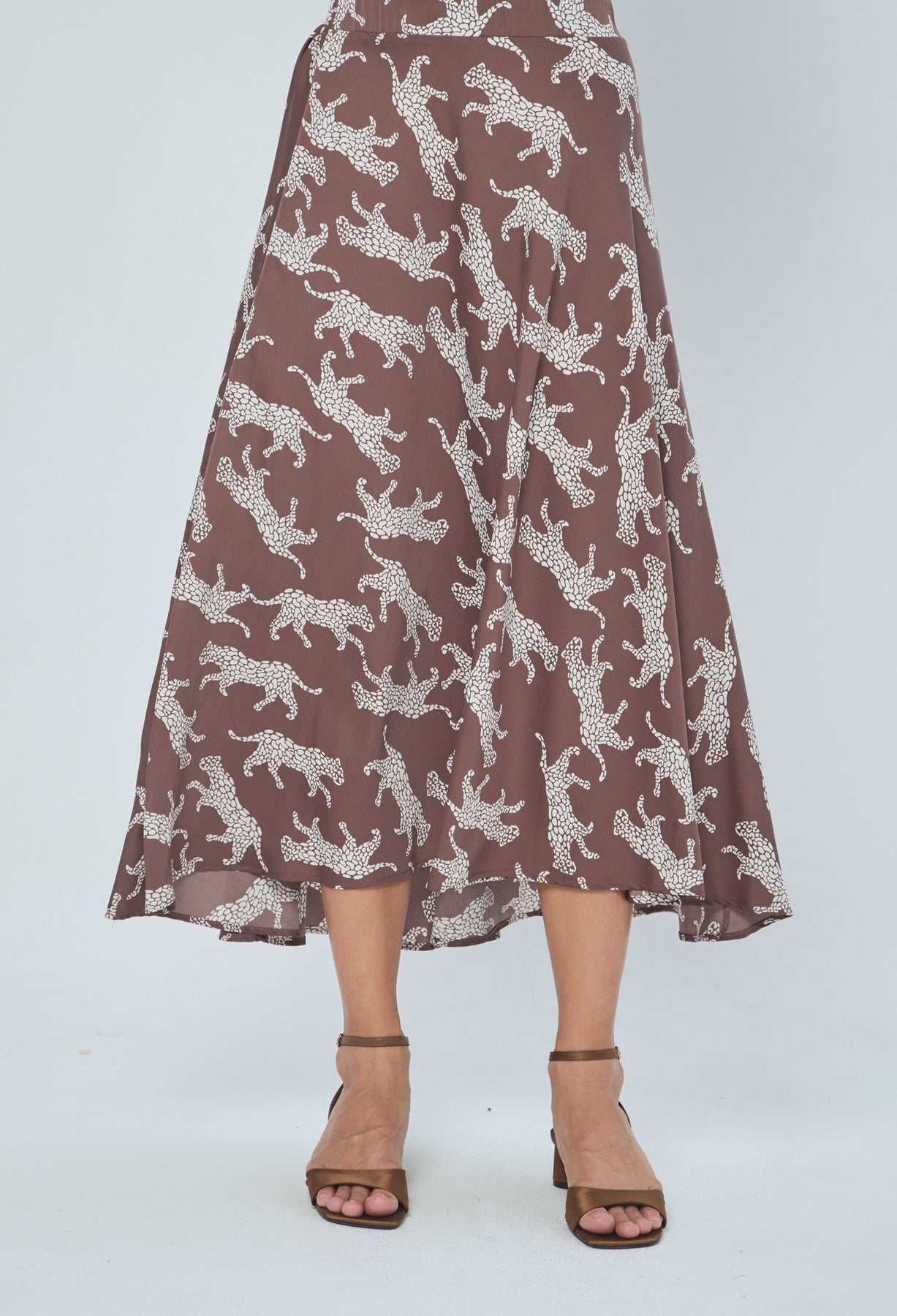 Precio habitual $369.900 Precio de oferta $277.425 Ahorro de 25%Falda larga, arrunchado en cintura, animal print de leopardo, corte bolero. La prenda que tiene puesta la modelo es talla S. La altura de la modelo es de 1.75. Los accesorios de esta foto no vienen con la prenda.