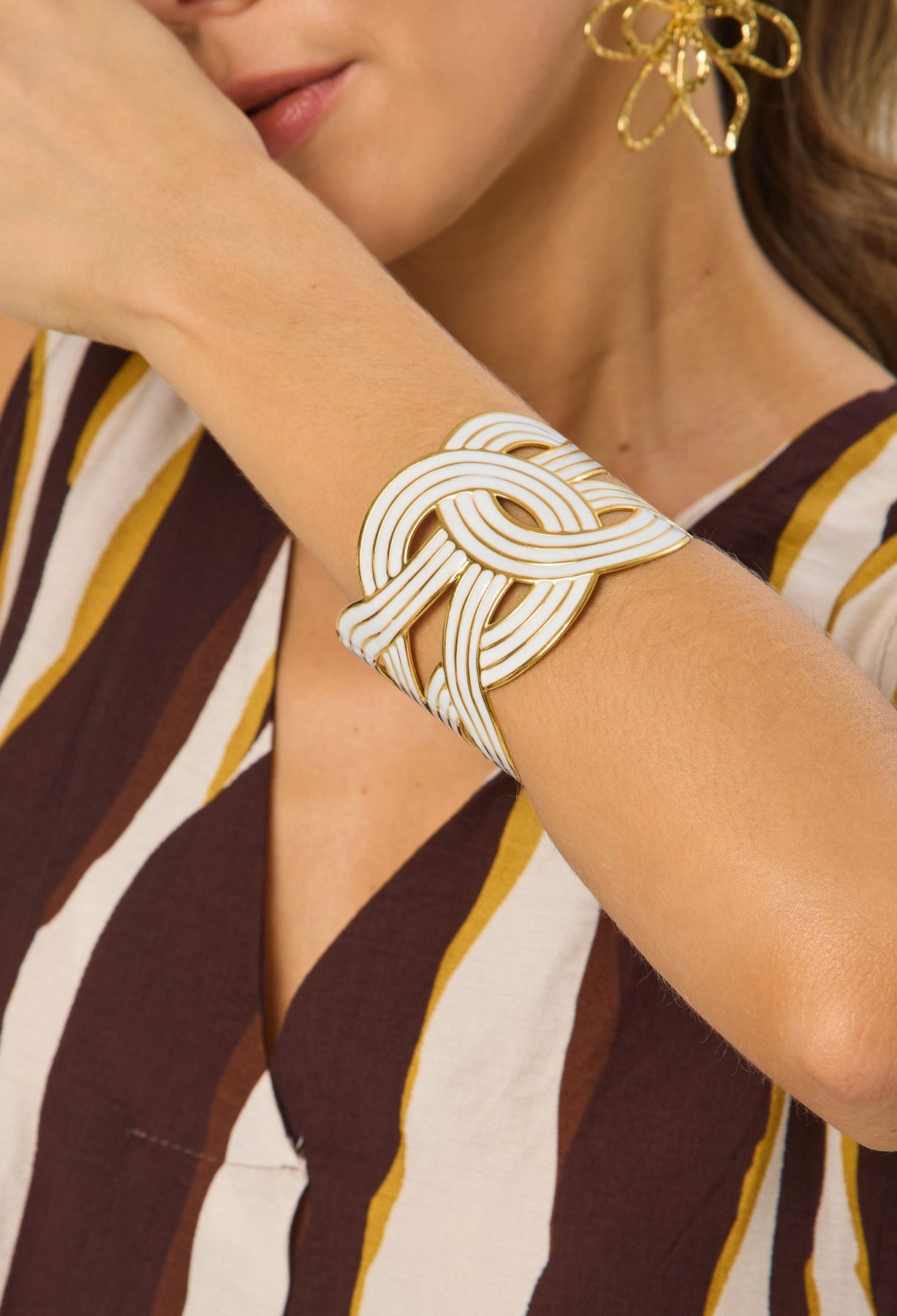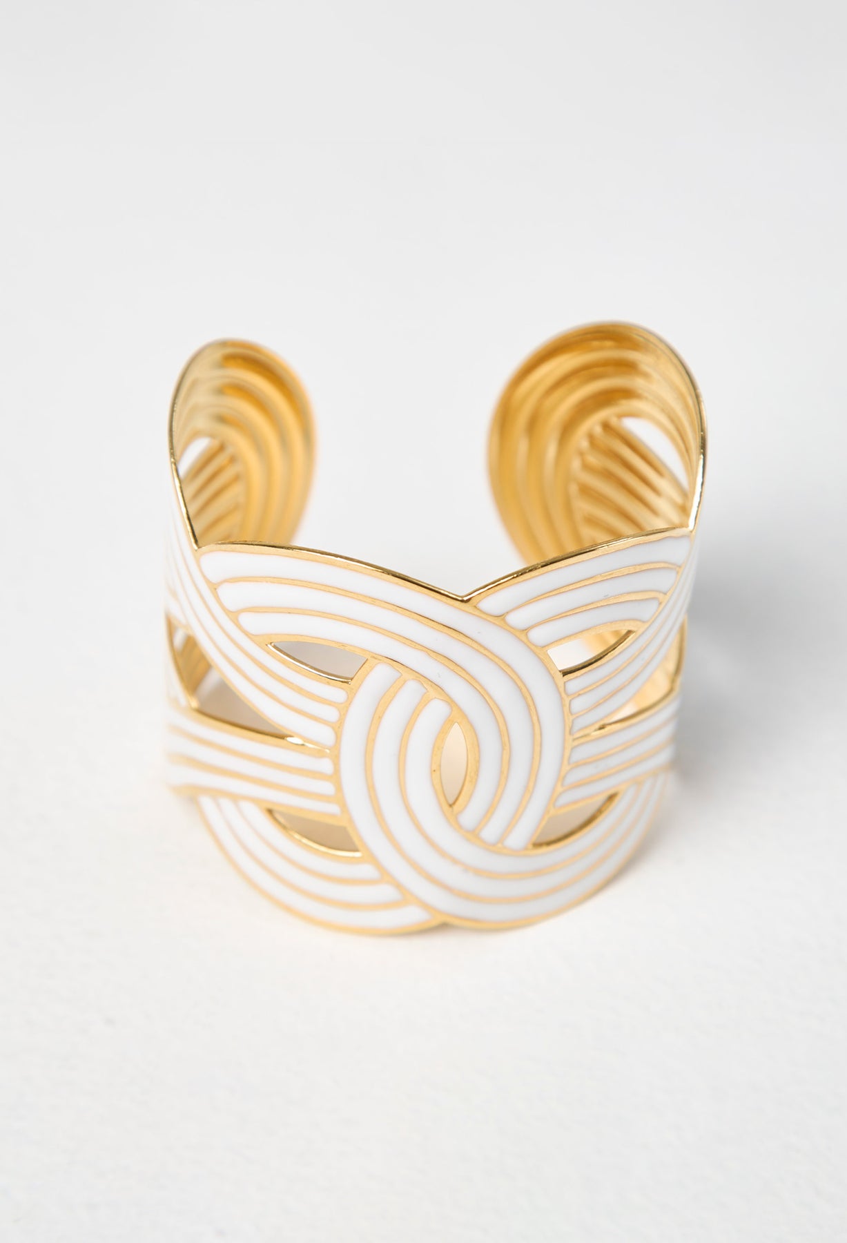 Precio habitual $89.900 Precio de oferta $67.425 Ahorro de 25%Pulsera ancha con diseño en líneas entrelazadas. MEDIDAS: 6CM.