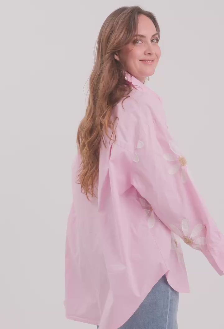 La sofisticación se eleva a través de texturas artesanales en esta pieza única de BYBLA. Esta camisa oversize destaca por sus exquisitos detalles de flores en bordado de alto relieve, creando una dimensión visual y táctil de lujo absoluto. Su diseño técnico incorpora una doble perilla que oculta los botones frontales, permitiendo que la pureza del diseño y los bordados sean el centro de atención. Con una marcada asimetría y una silueta amplia, esta prenda ofrece una caída fluida que garantiza elegancia y frescura sin marcar el cuerpo.