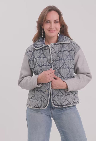 Chaqueta en Denim Abullonada Corazones NEW