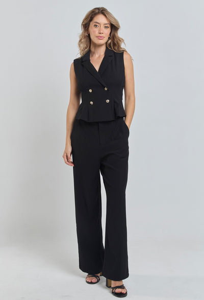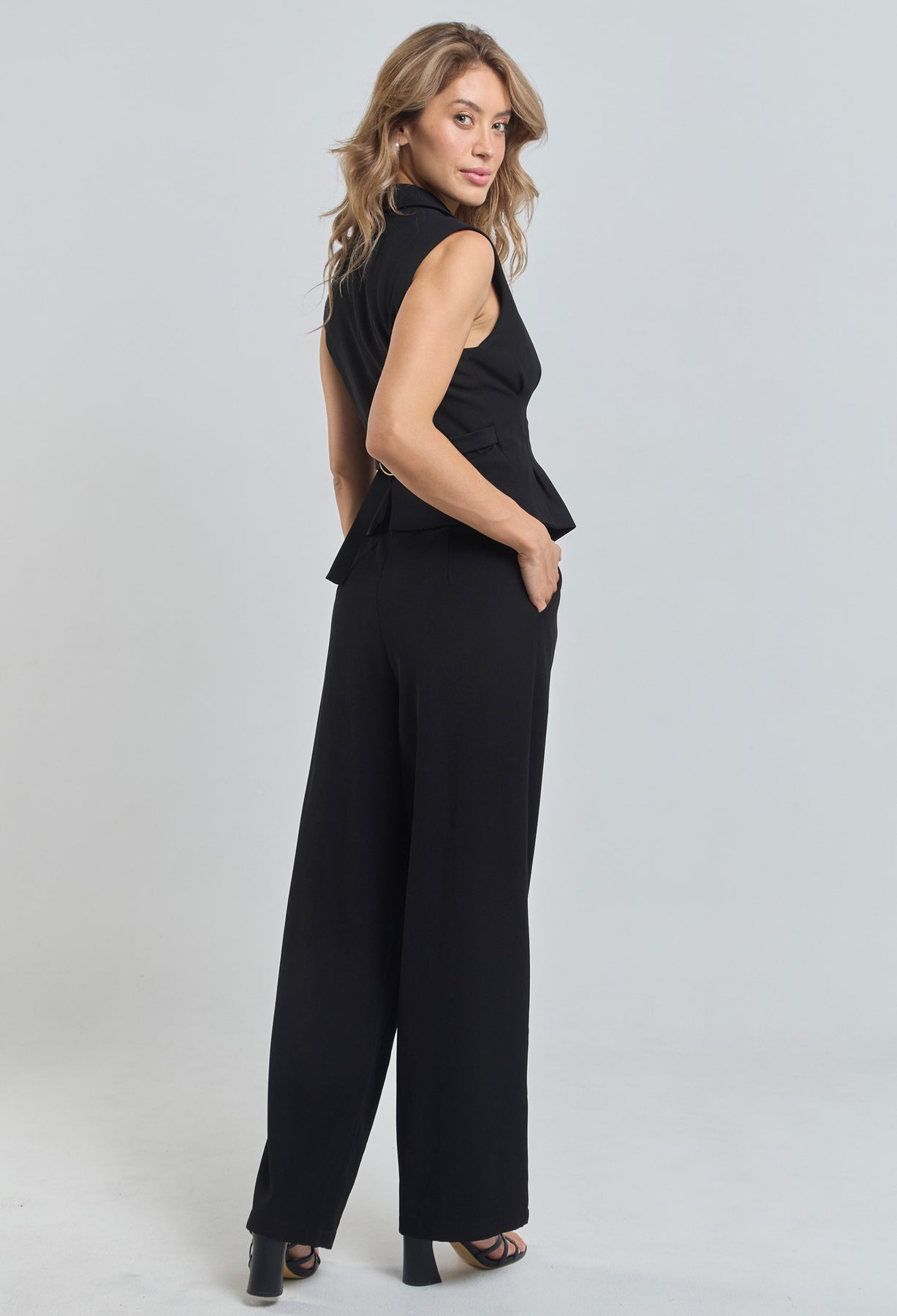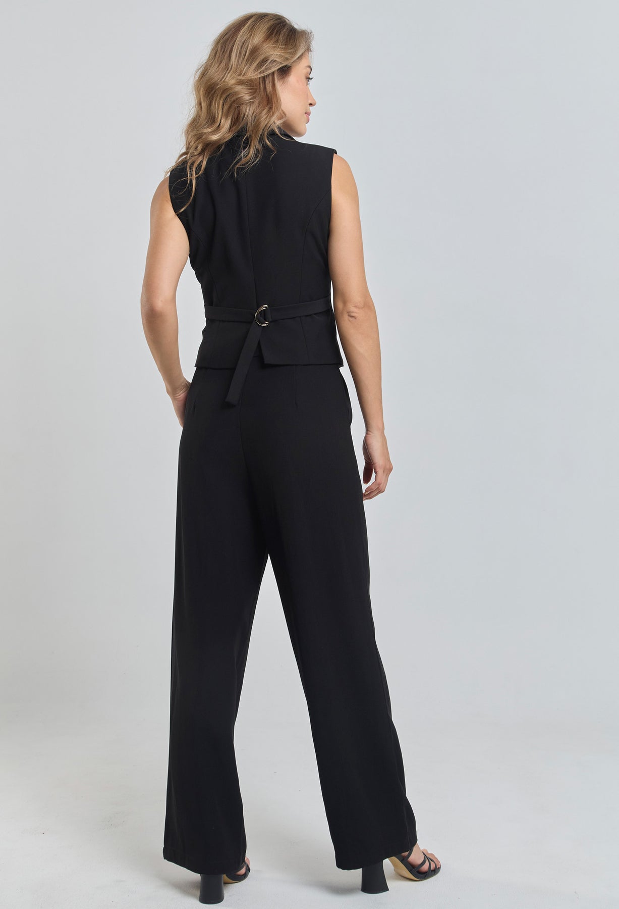 Precio habitual $499.900 Precio de oferta $269.900 Ahorro de 46%Enterizo manga sisa, tipo sastre. La modelo mide 1.74 m y lleva puesta la talla S. Los accesorios de esta foto no vienen con la prenda.