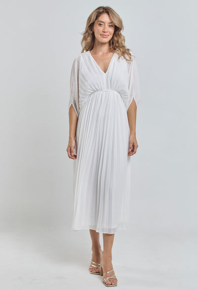 Precio habitual $499.900 Precio de oferta $299.900 Ahorro de 40%Vestido largo estilo imperio con tela plizada, cintura resortada. La modelo mide 1.74 m y lleva puesta la talla S. Los accesorios de esta foto no vienen con la prenda.